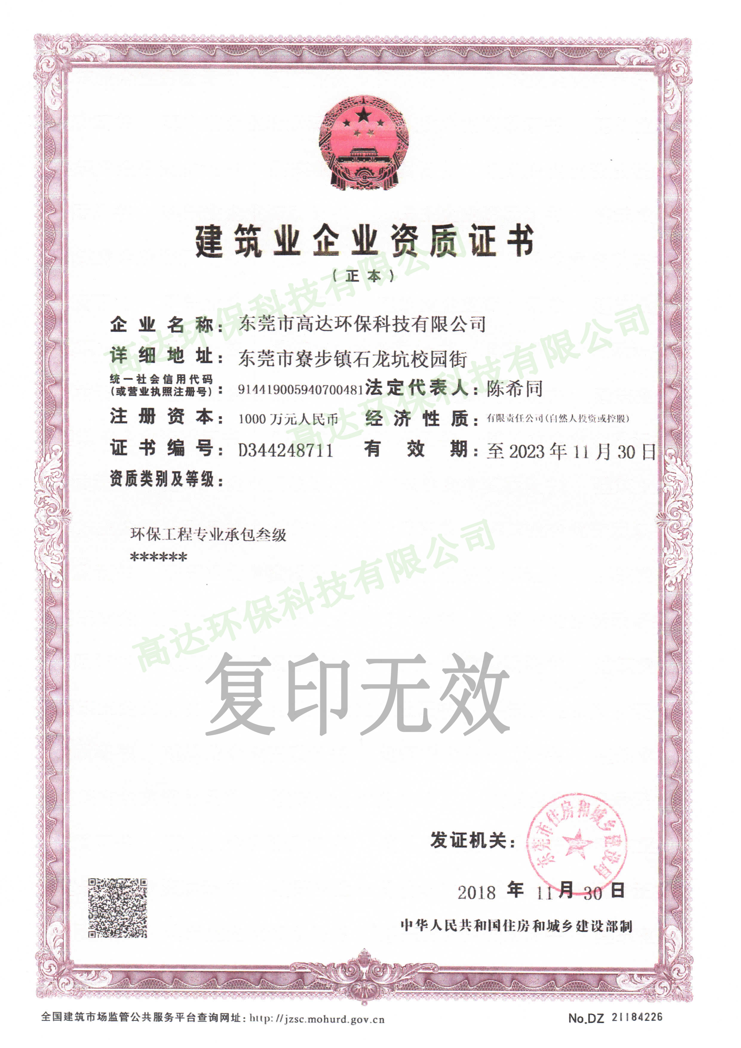 環(huán)保工程承包資質(zhì)